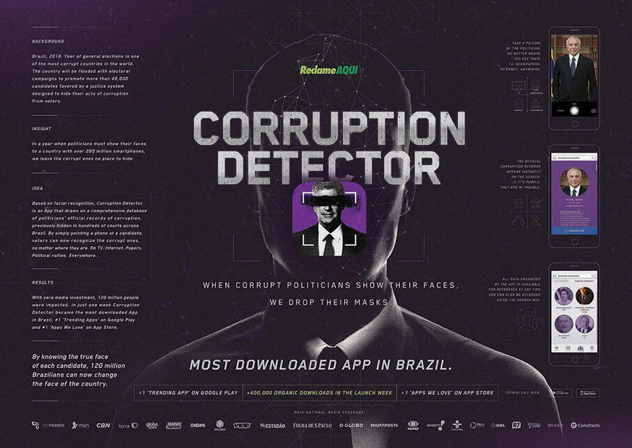 Brasil atravesaba una era de corrupción masiva y cinismo político, donde los titulares apenas mostraban la punta del iceberg. Detrás, más de 70.000 políticos y un sistema judicial enredado hacían casi imposible para los ciudadanos identificar quiénes eran realmente los corruptos. The Colour of Corruption nació para levantar ese velo: un plugin y una app que organizaban todo ese caos de información en una herramienta simple y directa, capaz de exponer con claridad lo que el poder quería mantener oculto.